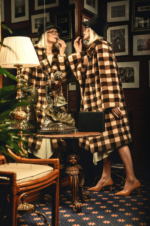 Также среди новинок есть меховые аксессуары – шаль из соболя, палантин из песца, воротник из лисицы, сумка из норки, головные уборы из стриженной норки.И это еще не все – в коллекции вы найдете шубу и жилет в клетку, которые помогут создать нетривиальные образы.