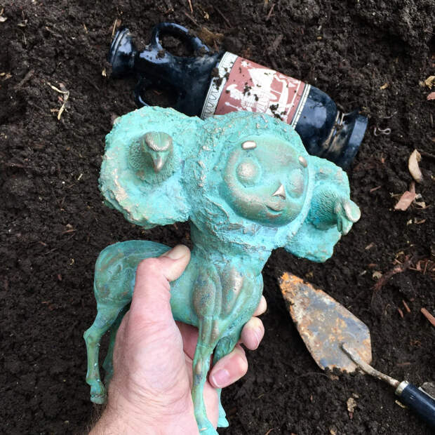 «Путешествия были большой частью моей художественной практики. Я устраиваю археологические раскопки по всему миру, работая с каждым сообществом как представлением. Во время этих представлений мы обнаруживаем сконструированные артефакты моей изобретенной цивилизации, в которых сочетаются факты и вымысел. Это попытка задать вопросы о том, что мы принимаем за реальность. Приказы «Оставайся дома» заставили меня сделать эти невероятные открытия рядом с моим домом и попытаться привлечь сообщество, поделившись ими через социальные сети. Я видел, что этот метод позволил мне связаться с гораздо большей глобальной аудиторией, и это чувство связи и сообщества сейчас важнее, чем когда-либо».
