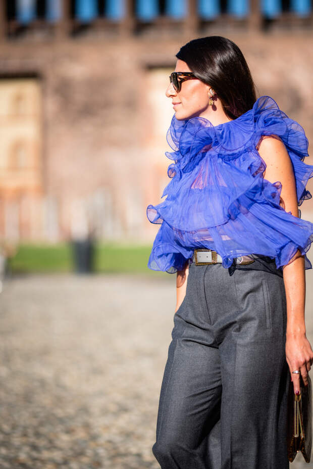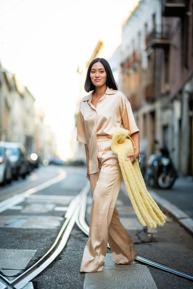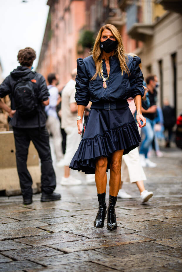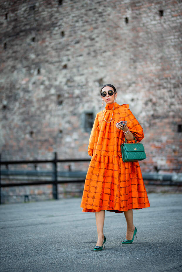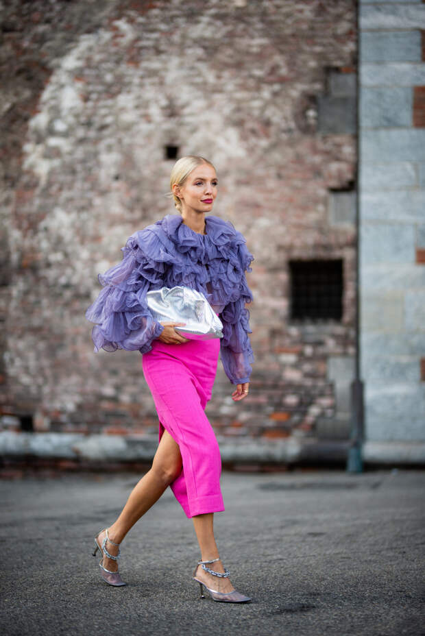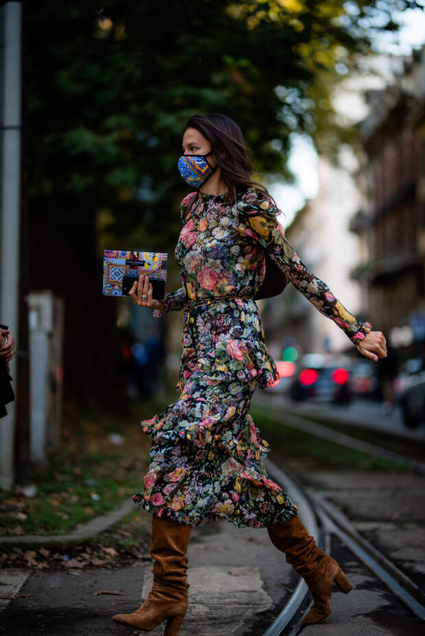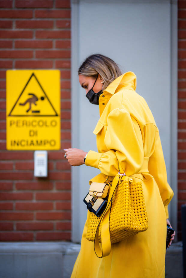 Итальянские активисты стритстайла не изменяют себе и делают ставку на буйство красок, оригинальность фасонов и желание выделиться во всем: будь то платье с цветочным принтом, блуза с пышными рюшами или защитная маска. Палитра образов гостей Милана пестрит яркими и сочными оттенками — нет ни намека на то, что еще пару месяцев назад мы все сидели по домам и носили спортивные костюмы. Активистки стритстайл-хроники смело миксуют фиолетовый с фуксией, оранжевый с изумрудным и одеваются с головы до ног в желтый.