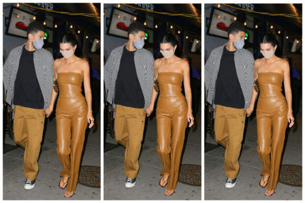 Тем же вечером влюбленные отправились на свидание в итальянский ресторан Carbone. Модель облачилась в карамельный топ с открытыми плечами и брюки с высокой талией. Элегантный образ завершили босоножки с квадратным носком и сумка Louis Vuitton. Что касается Девина, то он выбрал брюки горчичного цвета в тон образу Кендалл, черную футболку и рубашку в клетку.